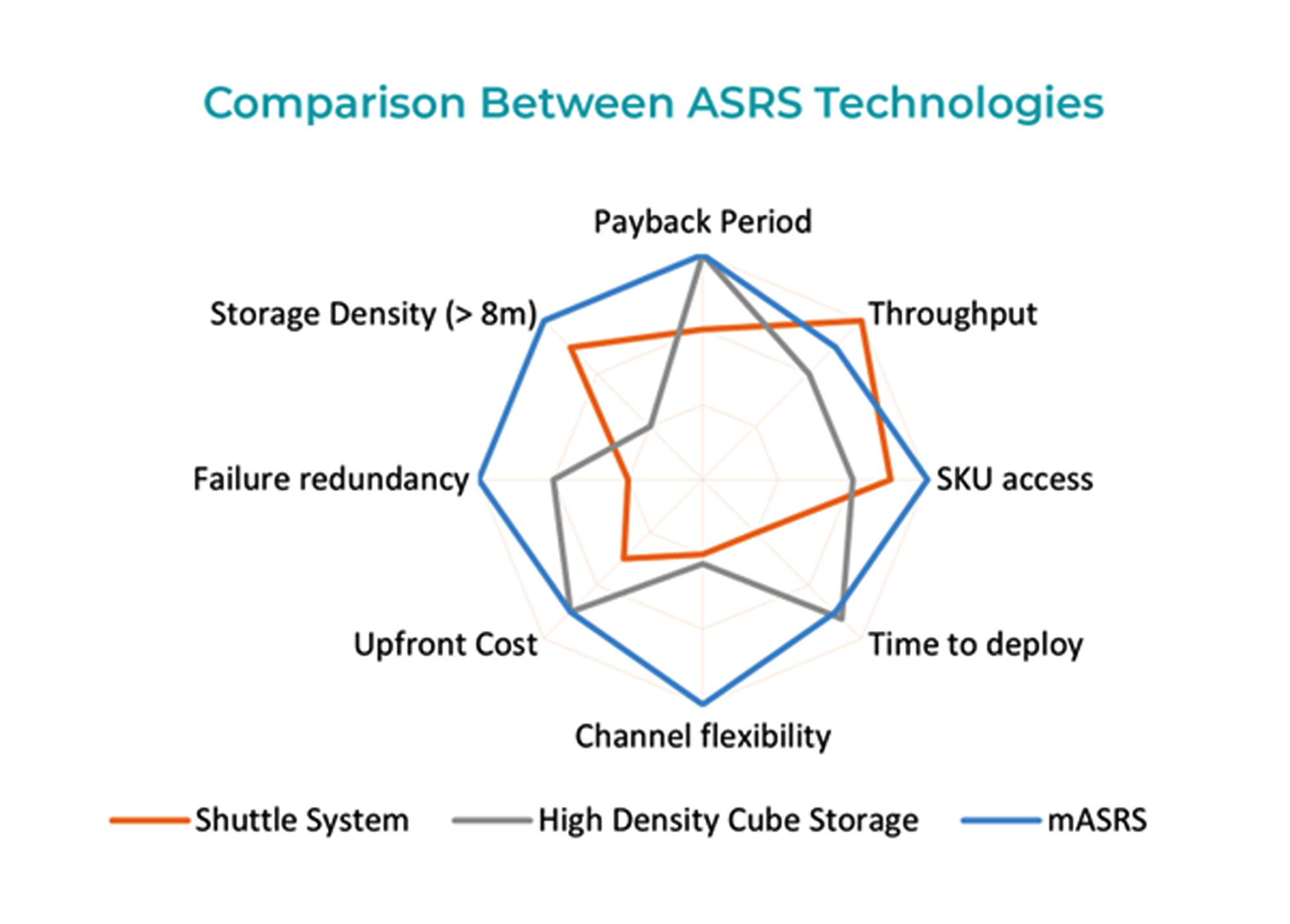 mASRS systems score highly in comparison with other G2P solutions across a range of different metrics