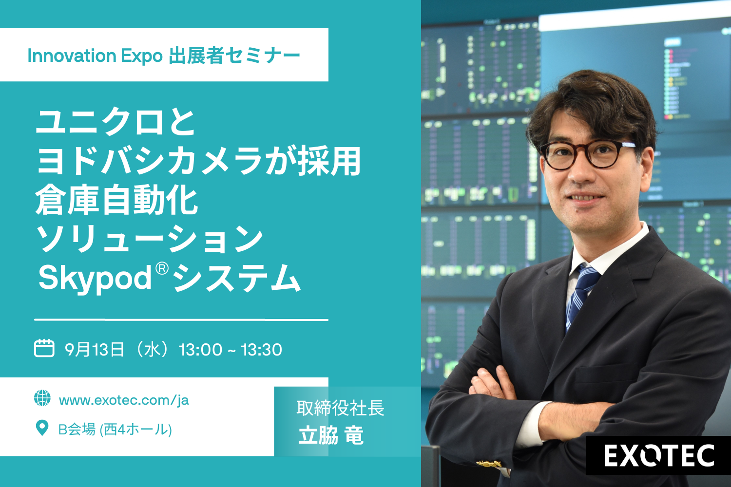 Exotec®は、2023年9月13日(水)~15日(金)に、東京国際展示場(東京ビッグサイト)にて開催されます 国際物流総合展2023 第3回 INNOVATION EXPO に出展いたします。「知恵と技術を集結し、2024年問題を解決する」をテーマとする本展では、ロジスティクス・物流に関わるあらゆる技術、知識、情報を集約、フル活用し、経営の変革を促進することを目的とした製品・サービスが一堂に会します。