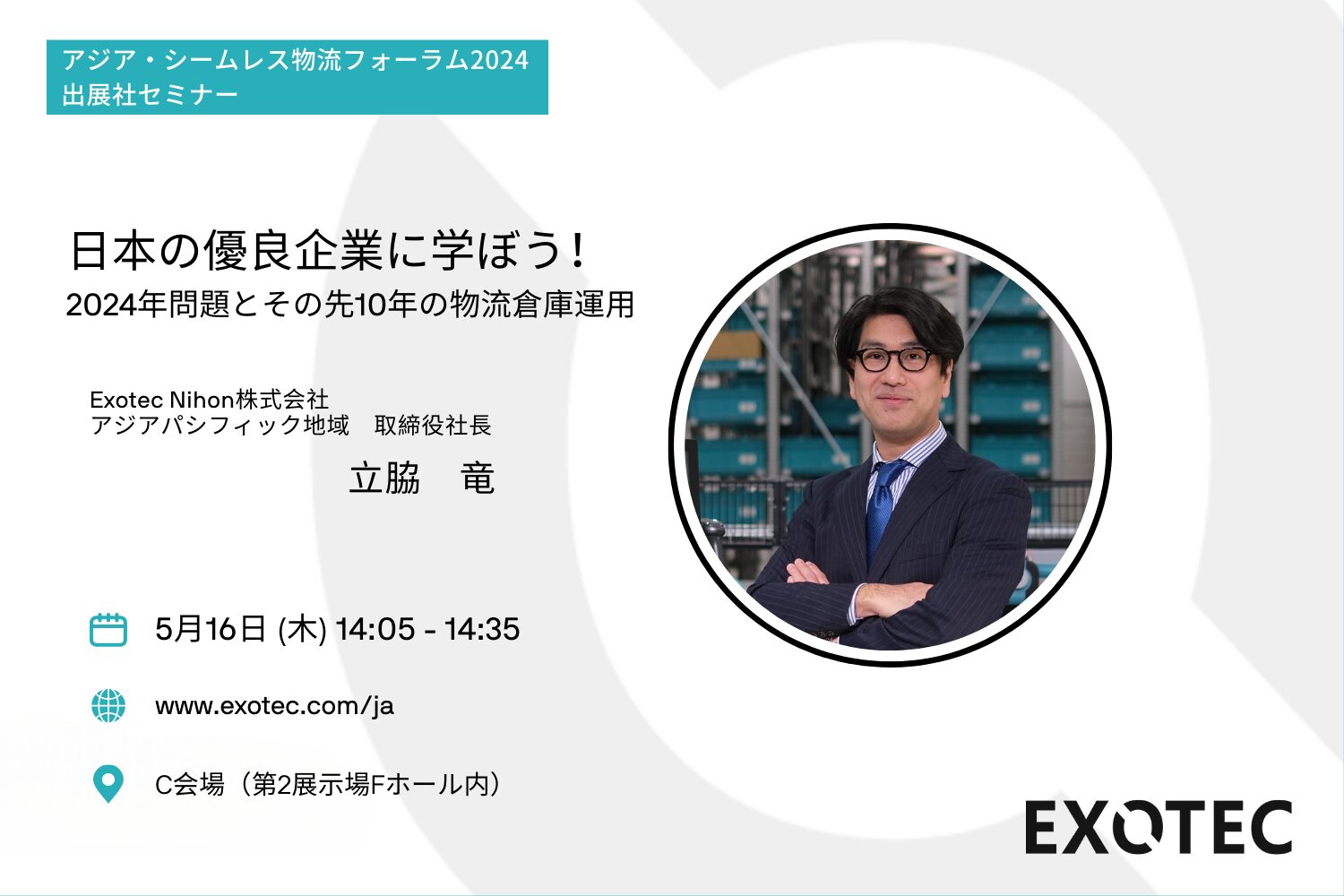Exotec®は、2024年5月16日(木)、17日(金)に、東京流通センターにて開催されるアジア・シームレシス物流フォーラム2024に出展いたします。