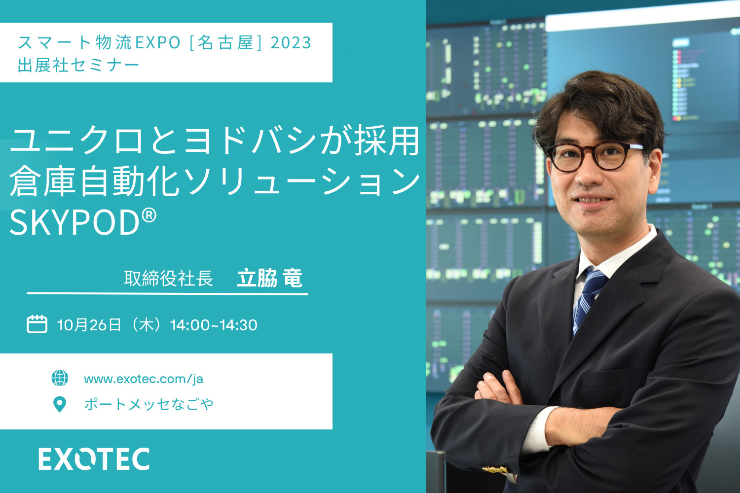 Exotec®は、2023年10月25日(水)~27日(金)に、愛知県名古屋市(ポートメッセなごや)にて開催される名古屋スマート物流EXPOに出展いたします。IoT/AI、WMS、TMS、AGV・ロボットなど物流に関する先端テクノロジーが一堂に会する本展は、物流向けのロボットを比較検討し、Skypod®の利点をご理解いただく絶好の場となります。