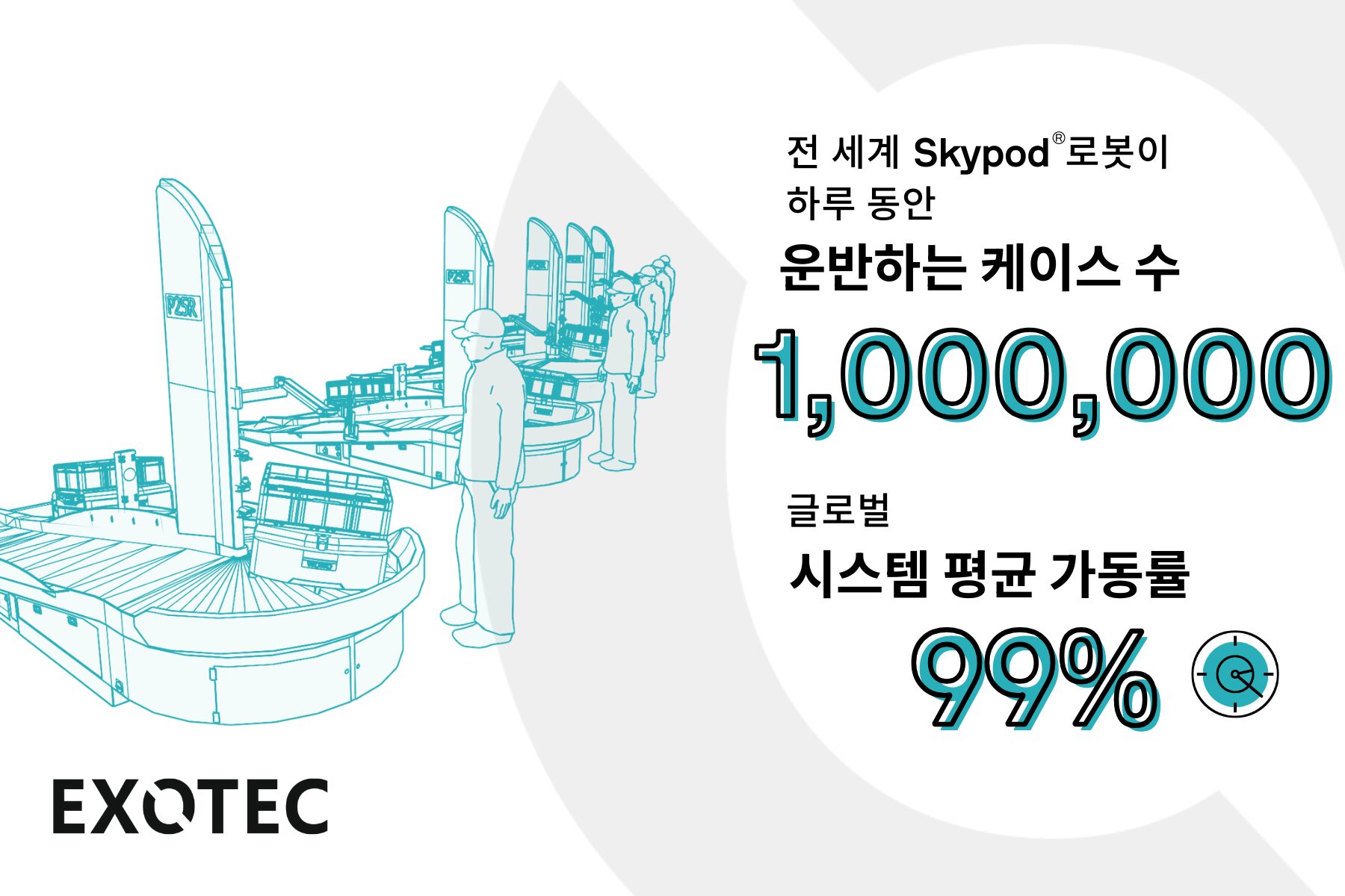 Exotec SAS(본사: 프랑스 크로와, CEO: 로망 물랭, 이하 “Exotec”) 의 한국 지사인 엑소텍 코리아 (Exotec Korea Ltd.) 는2024년 12월 19일, Exotec®의 창고 자동화 로봇 Skypod®가 하루 100만 회의 토트 운반을 달성했다고 발표했습니다. 이 기록은 Exotec이 제공하는 신뢰성 높은 창고 자동화 솔루션이 전 세계 공급망의 효율성을 높이는 데 기여하고 있음을 보여줍니다.